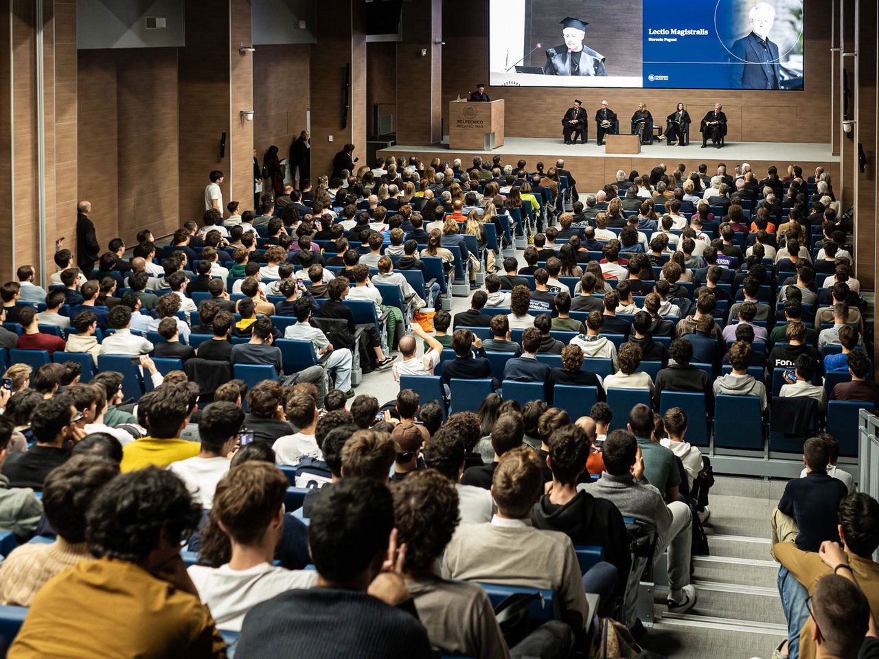 Dopo i saluti della Rettrice Donatella Sciuto e la Laudatio del professor Giorgio Colombo, docente di Disegno e Metodi dell'Ingegneria Industriale del Dipartimento di Meccanica, Horacio Pagani ha tenuto la Lectio Magistralis.